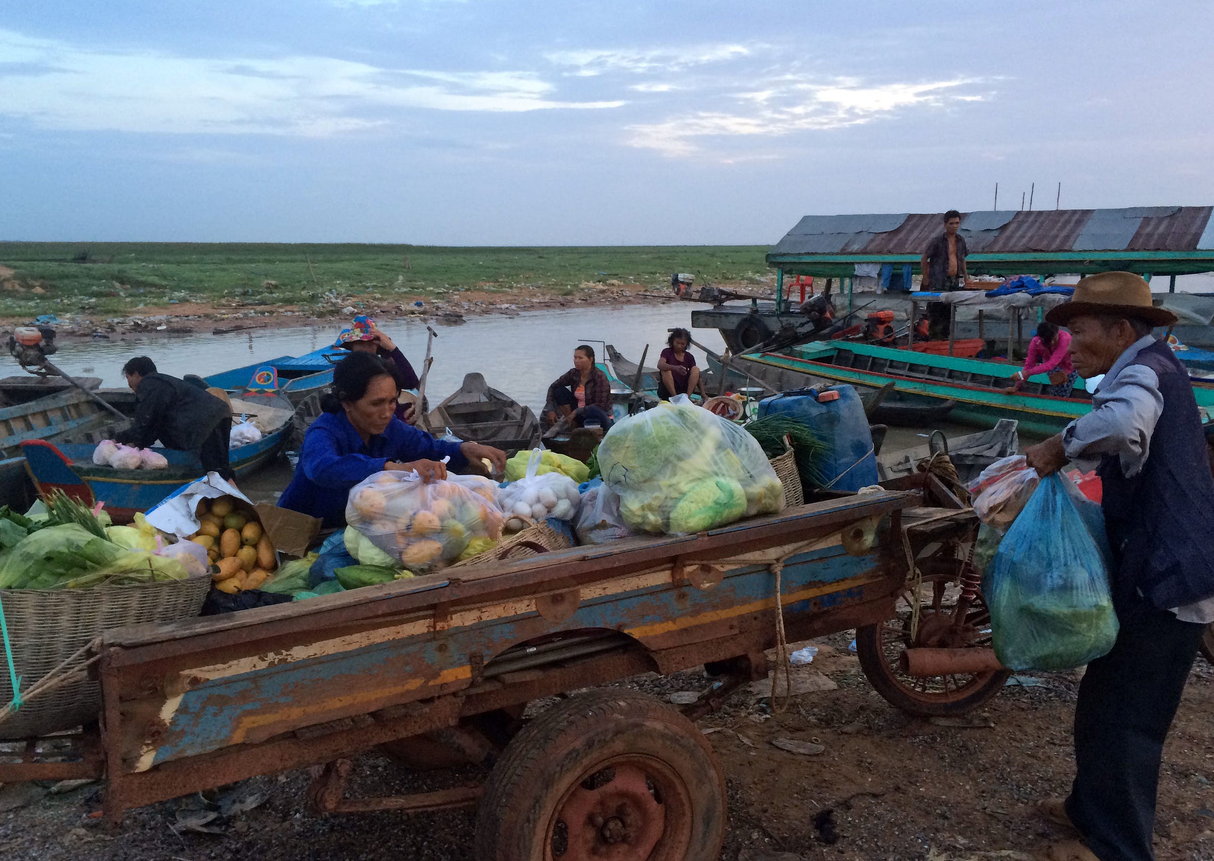 This group rents their boats, $10 for each day, and then there’s the outlay for the food. Selling to people who have no other way to get vegetables, eggs, or snacks should be easy enough, but the economics of the lake just aren’t working anymore. More and more frequently the vendors are falling into debt themselves, spending more than they earn. “I don’t know what to do or how to make a living, I just go day by day. I’ve done this for twenty years and this is the worst year,” one of the vendors tells me in 2016. A wild, flower-patterned hat screens her face and her plaid shirtsleeves are rolled down to the wrist against the sun. She sells chicken and palm sugar, things a family might be willing to forego. If they’re even there to sell to anymore.