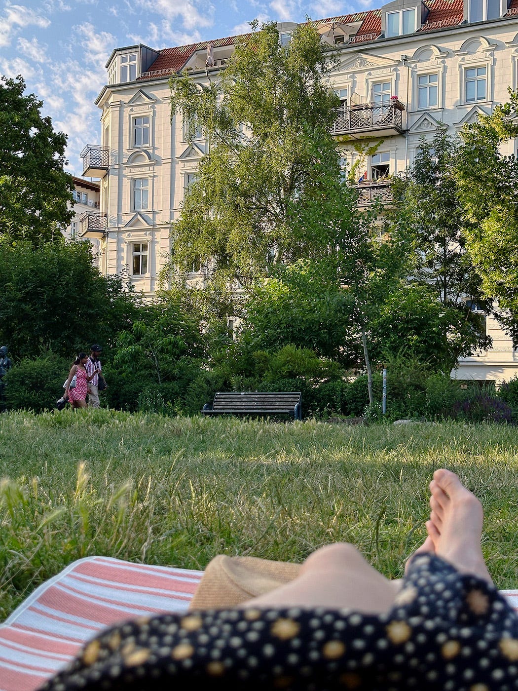 One thing I’ve really been enjoying in Berlin over the summer is taking a picnic mat out to a park and stretching out to read—some days, I managed to read an entire book, cover to cover. We would pack drinks and snacks from home or buy them from a cafe nearby. It’s a ritual I’ve come to relish reliably, when I want some solitude but also wish to be out in the world at the same time, when I want to enjoy the full bask of sunlight that our hinterhaus ground-floor flat circumscribes, when I want to give myself over to a book and enjoy it for what it is, not try to study it at my desk. Occasionally, while I’m doing this, I’ll check my phone, and something about the atrocities being done to Palestinians by Israel but also by the world, the sheer injustice of their condition, will impress itself, and my helpless complicity, onto me. I will think about how even the most everyday of pleasures, like sitting somewhere among people going about their day, breathing in the air and the light in a moment of peace, has been made impossible in Gaza. Did you see how the Israeli government attempted to ban Gazans from their sea shore, from something so primordial as nature? Did you see how, as Bisan Owda showed, they refused to listen, defiantly fought for whatever morsel of joy they could get for themselves? It makes me think that there can be no shame in grasping for joy wherever one can find it—what does one gain from withholding it from oneself, after all? But even while I think it, try to apply it to myself, to the rest of us, it can’t help but feel false. Life goes on, for the most of us. Aside from the truly brave and hopeful—those who protest consistently, who risk their lives to join the flotillas, who speak out no matter what pressure they’re under—most of us continue with our lives as we always have, as we always planned to. But does one have a right to just continue living one’s life, to enjoy it, in times like this when the world is turned on its head? Is it enough to join the odd protest and donate and boycott and speak out and still go for weddings and birthday parties and holidays and laugh and clink glasses and pay mostly lip service to Gaza in broader company? Is it enough to just be constantly aware and thankful, to remember that there are others who have no right to do the same, have had their right snatched away, and to do whatever is within one’s capacities to try to change things? How much disruption to life-as-usual is one obligated to inflict, on oneself and on others, in order to make the world right again? Does truly being in solidarity mean also going on hunger strike, as a Palestinian trio of journalists did and asked the world to do—but nobody did, and who can fault them? For those of us who do not ourselves face extinction, a hunger strike must seem the height of nihilism, not indomitable hope. For those of us who still have safe harbour in this pitiless world, a hunger strike must seem the act of someone so desperate they have no other recourse, because what does going on hunger strike even mean if one isn’t prepared to die? That’s the difference, isn’t it? We are not the ones suffering. Our loved ones are still alive, not bombed to bits and rags; they still have a lot to live for, we still have them to live for. Outside Gaza, outside the world’s conflict zones, the world still looks beautiful. If you look away long enough, keep the violence at bay long enough, the world remains beautiful. And you’ll feel good, and you’ll feel wicked, all at the same time. But who cares, really, how you merely feel?